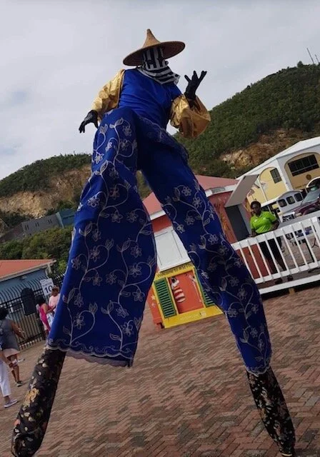 In November of 2017 to present, I began to work as a Mokojumbie dancer with the Virgin Islands Department of Tourism, welcoming guests at Crown Bay and WICO docks after the devastation of 2 hurricanes to help bring back tourism to St. Thomas.